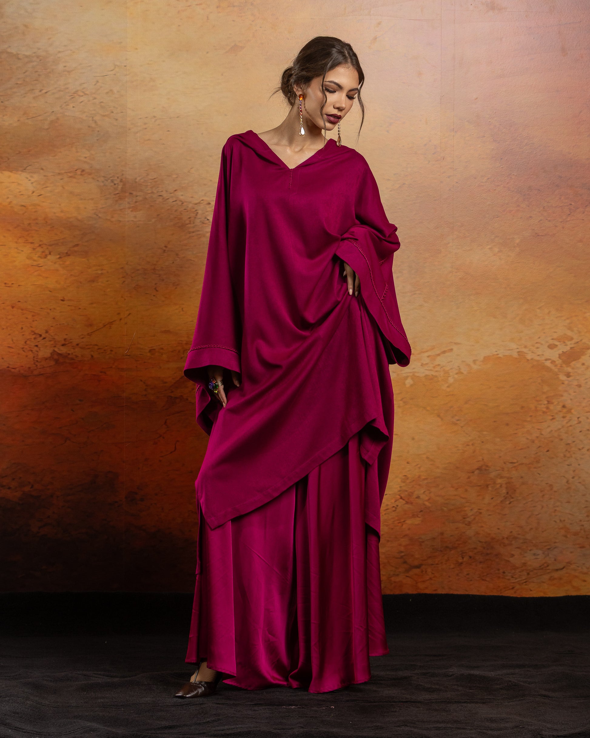 JELLABA  oversize en Mlifa, manches longues raglantes, fentes sur les côtés