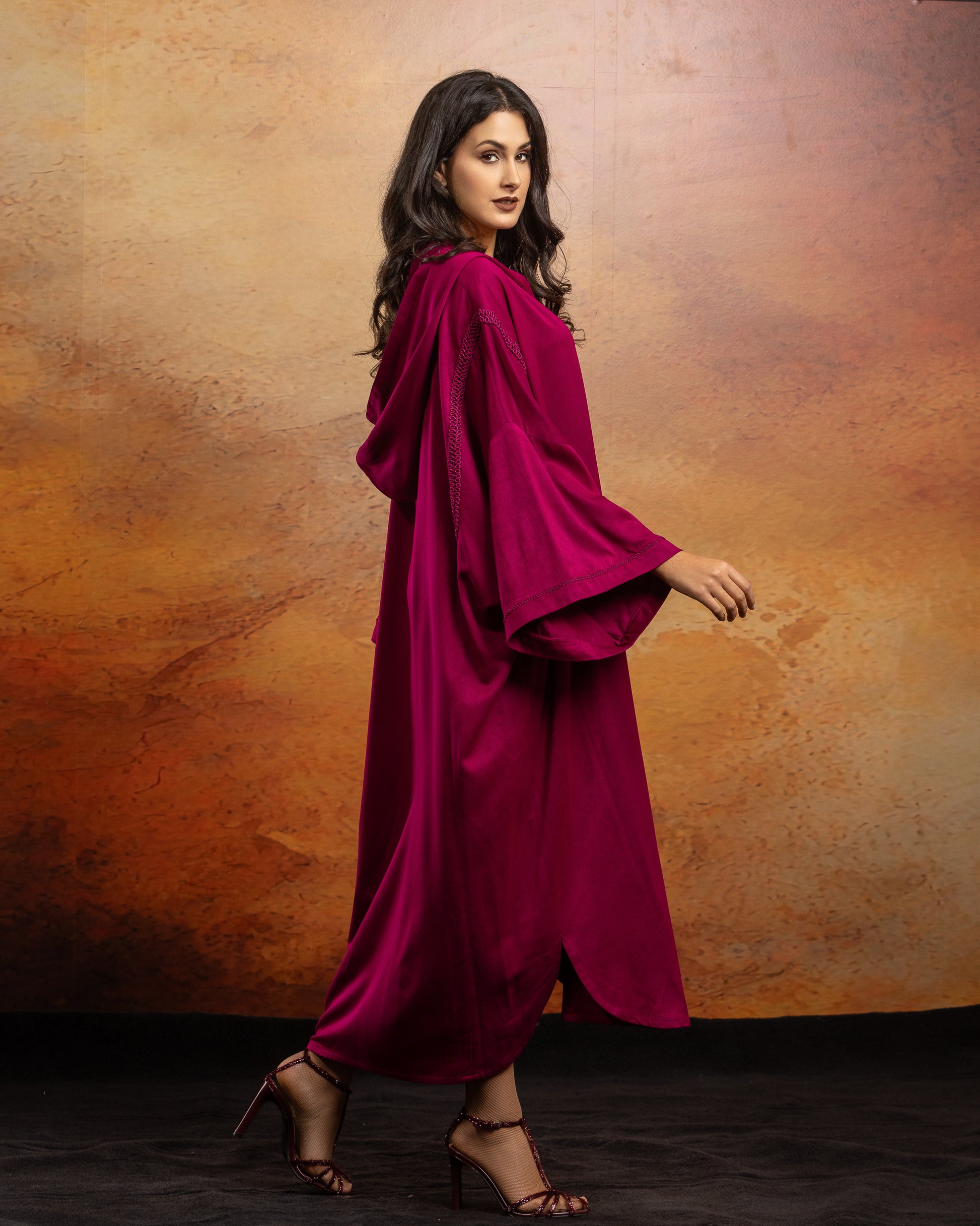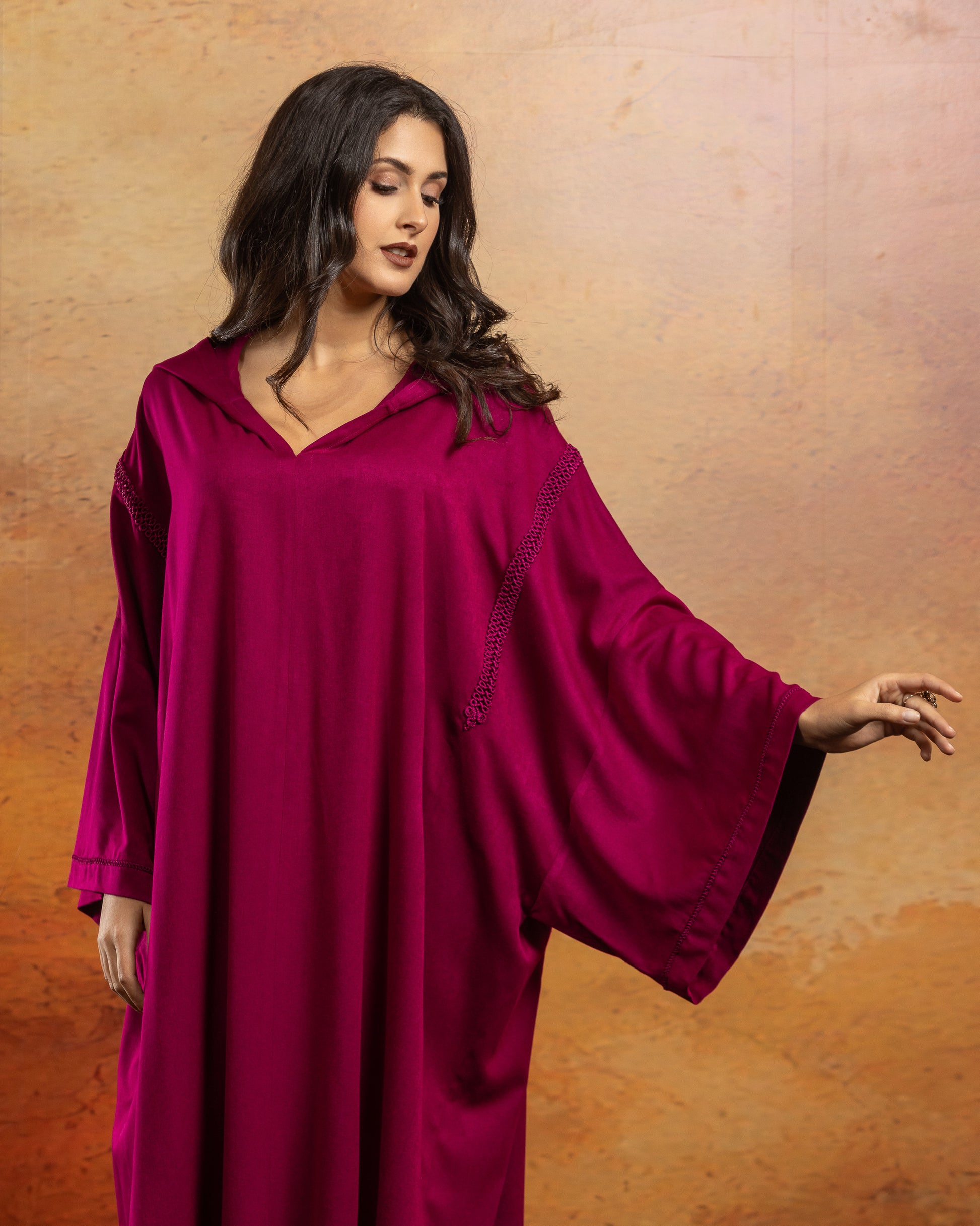 Jellaba oversize en Mlifa, manches longues, fentes sur les côtés et milieu devant.